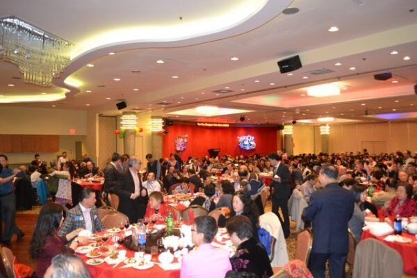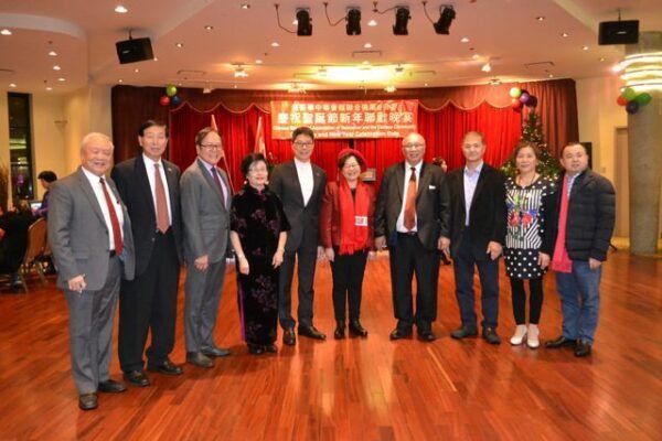 (中華會館理事與眾嘉賓共同舉杯向各界人士敬酒)