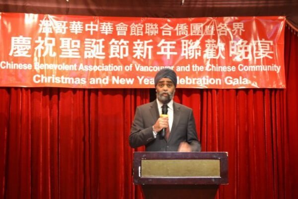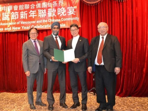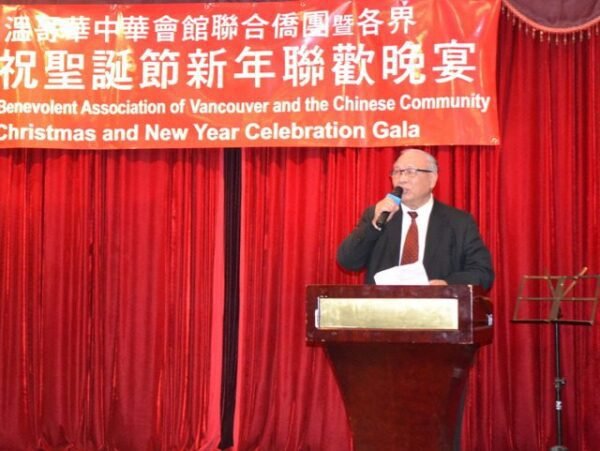 加拿大聯邦政府代表、國防部長石俊先生致聖誕賀詞並致贈賀狀予中華會館,中華人民共和國駐溫哥華總領事館副總領事田妮、聯邦國會議員關慧貞、聯邦國會議員黃陳小萍、卑詩省省議員馬蘭妮、卑詩省議員Andrew Weaver、 香港特區政府經濟貿易辦事處駐加西首席專員袁黃潔玲等嘉賓也分別緻聖誕賀詞,向華裔社區民眾恭賀聖誕及新年。
